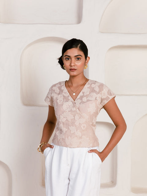 The focal point of this enchanting piece is the meticulously crafted appliqué flowers, each one a testament to the skill of the artisan. Enhanced with luminous pearls, these flowers stand...