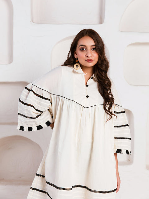 Embrace elegance with our Banana Crepe Dress, featuring delicate embroidery on the sleeves. This dress combines luxurious crepe fabric with intricate detailing for a sophisticated look. Perfect for any occasion,...
